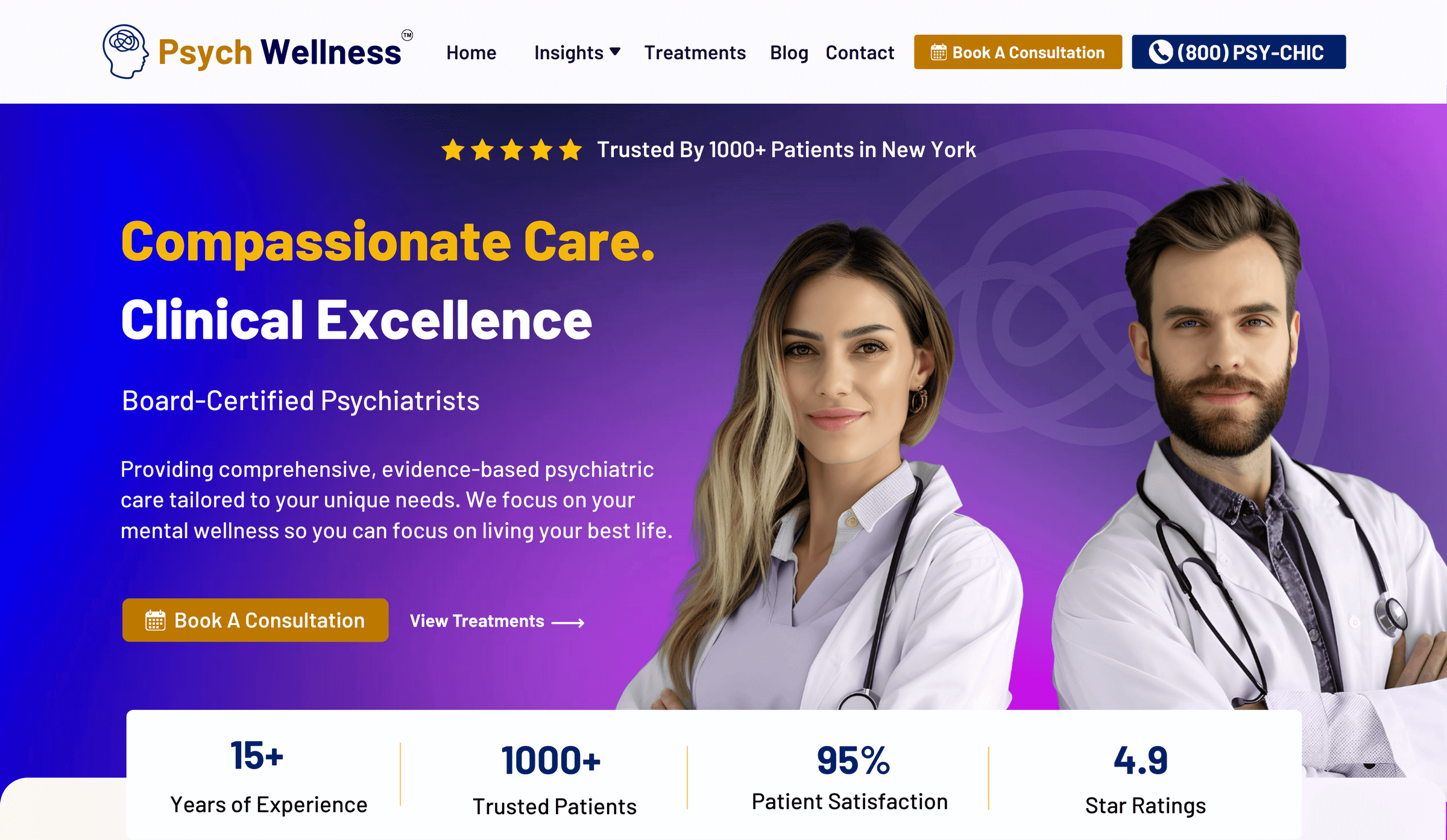 We go Hyper-Local with GEO-Targeting. You won't rank for "Psychiatrist NYC" overnight. But you can rank for "TMS Therapy Brooklyn Heights" or "Anxiety Doctor Upper East Side." We win specific neighborhoods first, then expand.